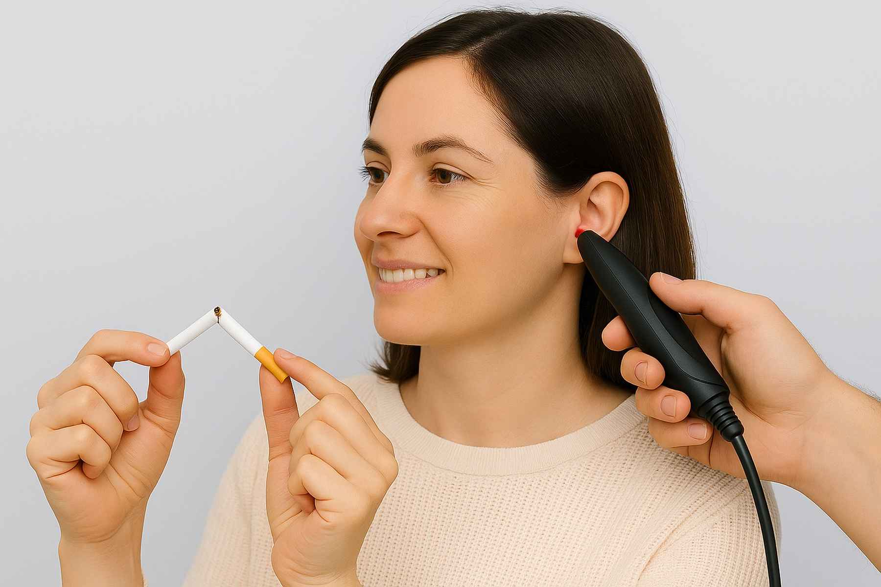 Les zones choisies correspondent aux points définis par l’acupuncture traditionnelle chinoise et l’auriculothérapie. En plus de leurs nombreux effets, ces points activent la production d’endorphines, des substances naturelles qui procurent une sensation de bien-être et diminuent les envies de fumer.